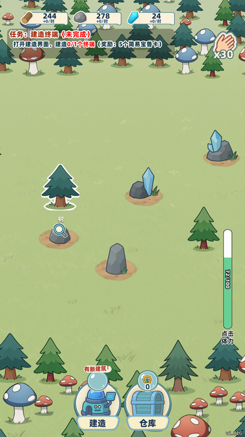 4.捕捉成功后,玩家可通过点击来收集资源,如木材、石头等。