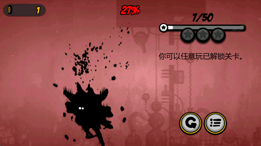 2、点击开始后打开关卡页面,在该页面中玩家可以切换墨点角色,点击左侧的音乐按钮;
