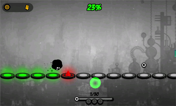 2、跳火尖刺注意在它滑至上个罗盘再按,这样才能过,使用指尖点而不是移,黑球便可穿过。