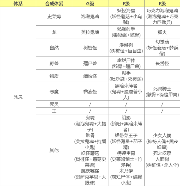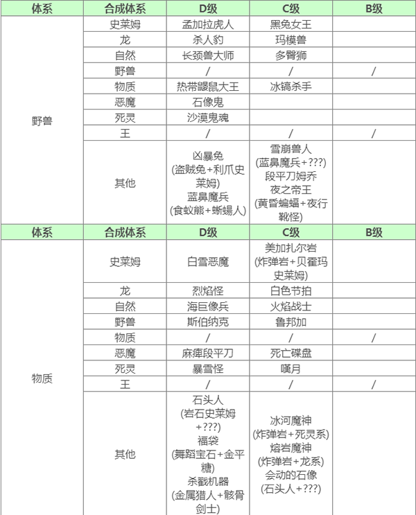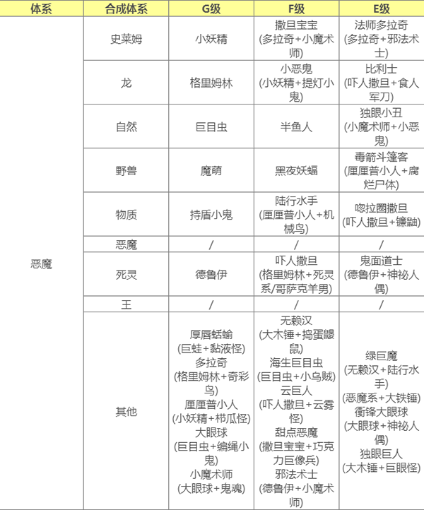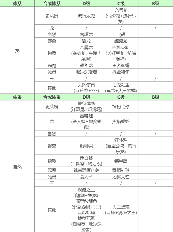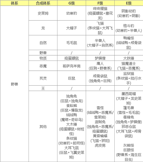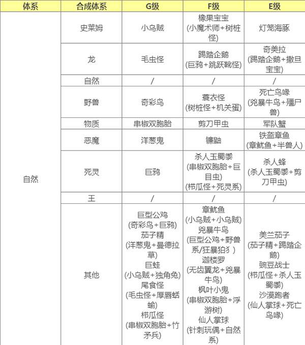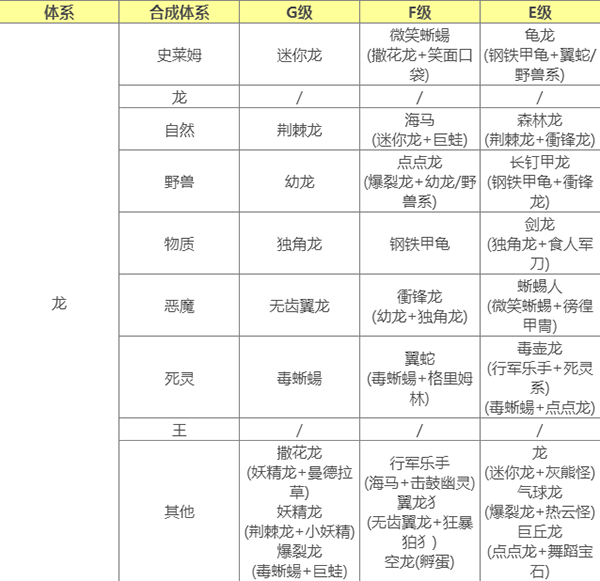要合成E级怪 使用通用配方合成需要父母任一E级 或 使用指定配方