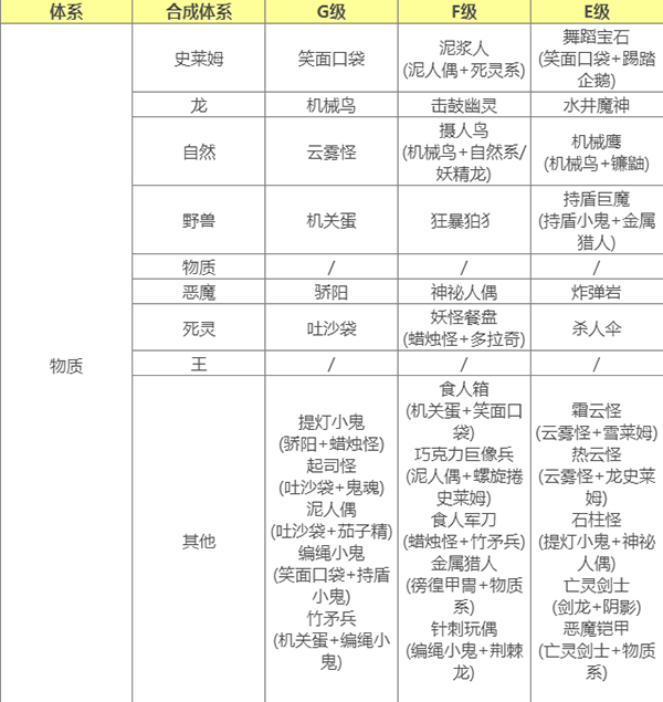 不使用E级怪合成/指定配方 则永远不会合到E级怪