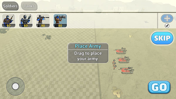 3、派兵:拖动兵种图标到战场来放置您的军队。