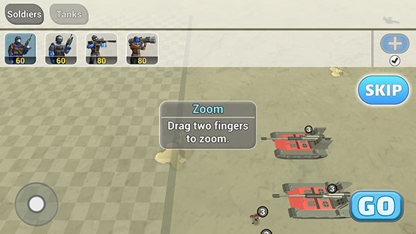 2、缩放:使用两个手指拖动可以进行战场缩放。
