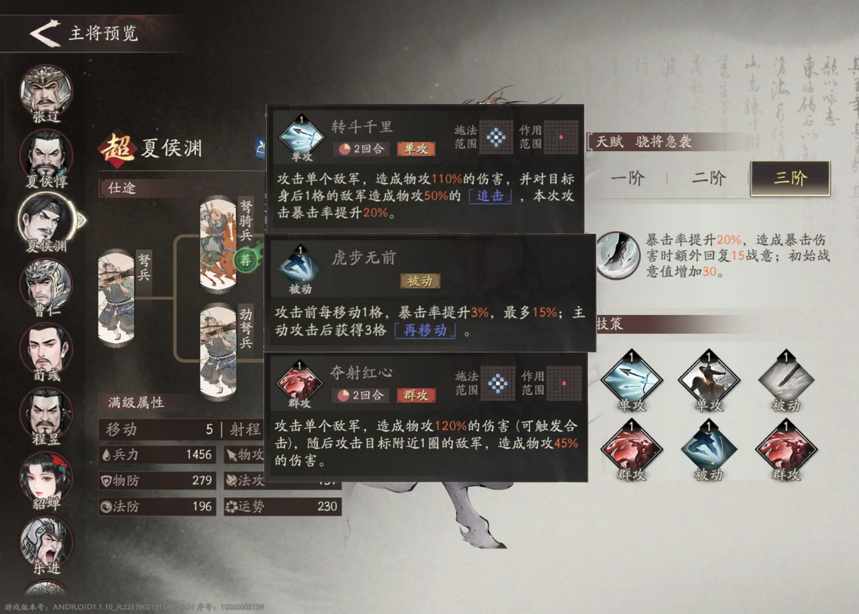 实话说夏侯渊两个分支的被动技能都很强。但在前期资源不够的情况下,骑兵线的虎步无前性价比更高。毕竟就算你两条线都开通,在前期只有两个技能栏的情况下,你也不可能把两个技能全放成被动。