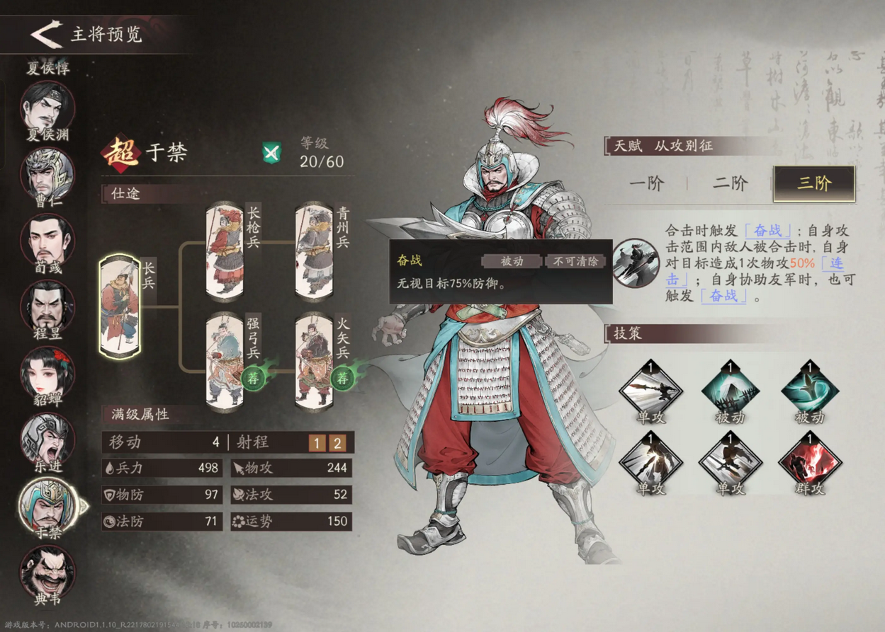 合击是本游戏的核心机制之一,而于禁更是合击流的代表人物,只要攻击范围有合击,于禁多少得随一个,甚至随的一个还能合击。