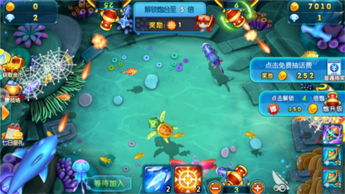 升级炮台能提高捕鱼的杀伤力,攻打大鱼和远处的鱼时必须要使用大炮,如果炮弹不足,是无法捕捉成功的,因此还需要升级炮弹的倍数,倍数越高,冲击力越大。升级炮台需要消耗一定的钻石,钻石如果不够可以在游戏中升级赢得钻石或者去商城购买。