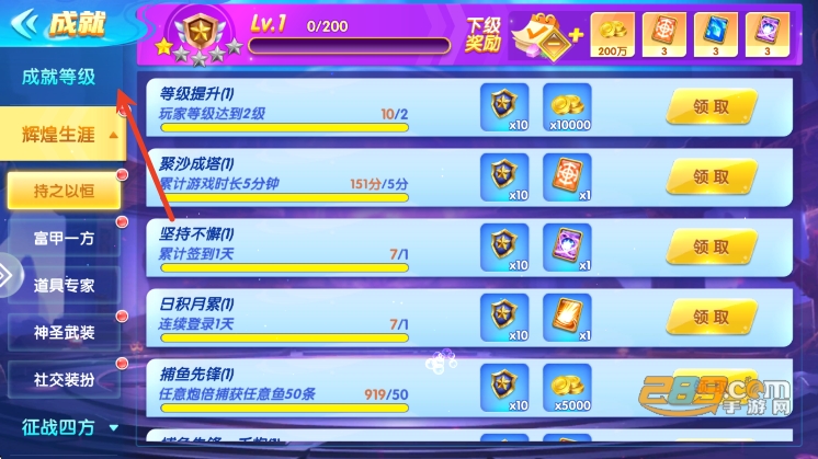 玩家完成相关捕鱼任务,可以获取成就奖励