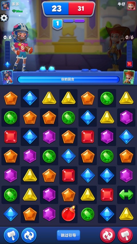 宝石大乱斗官方版中的丛林乱斗活动堪称最紧张刺激的PVP玩法,三个回合要求玩家每回合在限定步数内达到“及格线”,才可以晋级下一个回合,最终只有2名幸存者可以获得丰厚的奖励。
