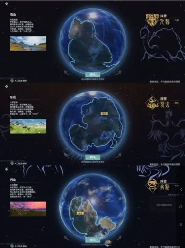 进入游戏之后,玩家需要选择降生地点,也就是之后房屋建造点。在妄想山海这款游戏中,主要分为四块大陆,对应三个阵营。即东山属烈山阵营;西山属有熊阵营;南山属九黎阵营;中山大陆则是混乱区不可安家,不同阵营的玩家以红名相见,胜者则可以掠夺中山上的稀有资源。每片大陆基础物资丰富且相似,玩家可依据喜好选择阵营。如果需要,可以随时搬家换阵营。