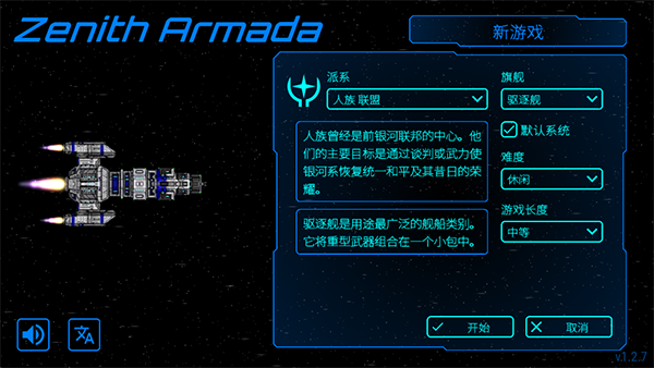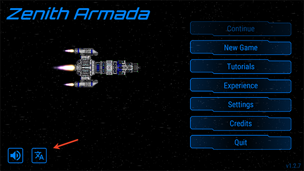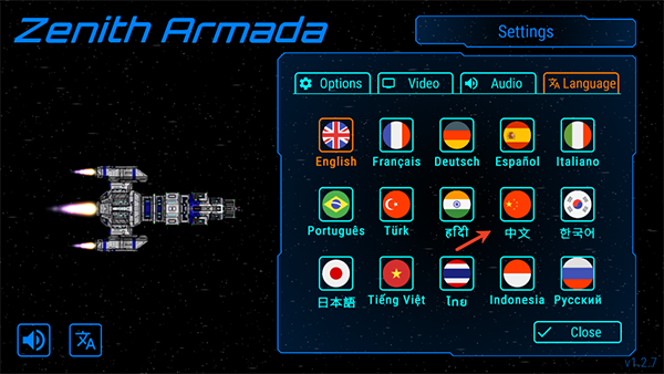 1、进入天际舰队最新版游戏内我们点击做下角的语言。