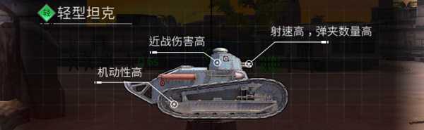 轻坦的特性:移动速度快,弹药容量大、射速快,占领据点及侦查使用首选。